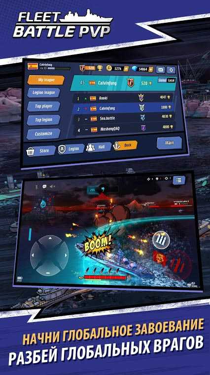 Fleet Battle PvP – это крутые битвы кораблей в режиме реального времени. Множество игроков со всего мира каждый день сражаются тут за господство над морем. Выбирайте военный корабль, придумывайте свою стратегию и отправляйтесь сражаться с многочисленными противниками. Эффектная графика покорит вас с первых же минут игры, регулярно проходящие события не дадут заскучать, а интересный и постоянно развивающийся контент удивит свои разнообразием.Информация об игре