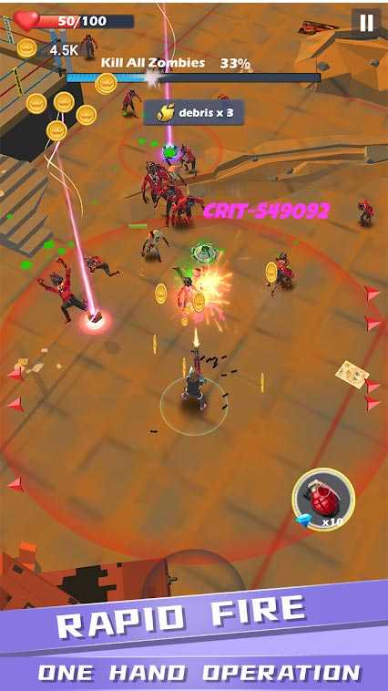 Crazy Zombie – это новый мобильный экшен с классной графикой и широким арсеналом оружия. Простое управление с возможностью автоматической стрельбы не составит труда даже для начинающих игроков. Используйте партнеров с уникальными навыками, чтобы упростить себе задачу. Зомби бывают разных видов, и для борьбы с каждым из них нужна особая тактика. Оттачивайте боевые умения, выстраивайте свой стиль и наслаждайтесь ярким игровым процессом.Информация об игре
