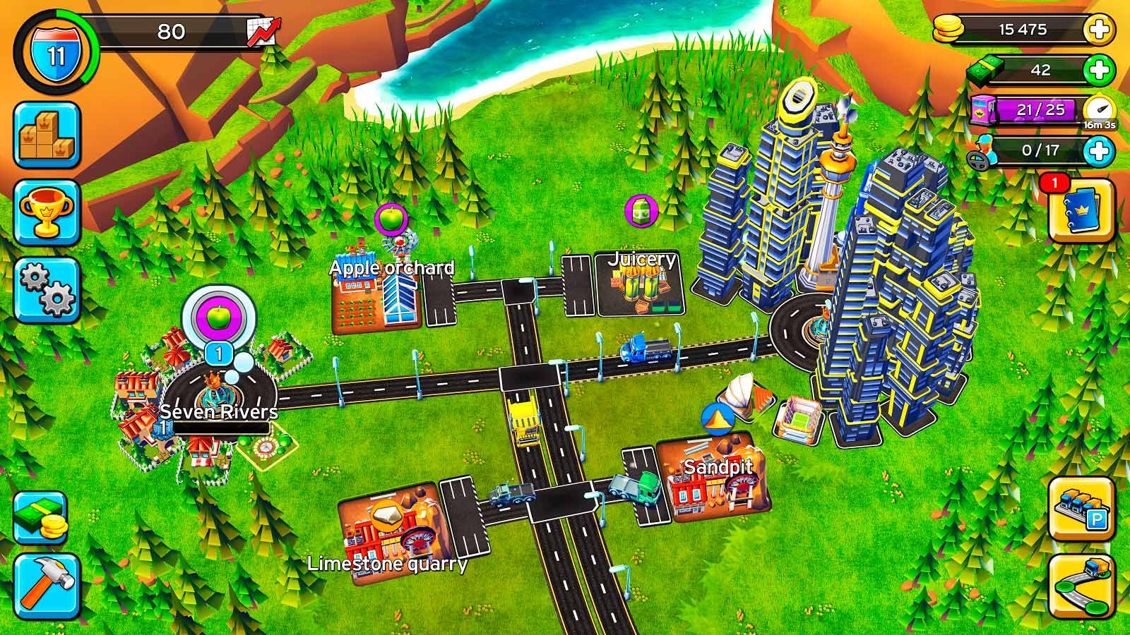 Когда ваша деревня начнет постепенно превращаться в огромный город, цели станут еще серьезнее, а потребности вырастут в несколько раз. Тогда нужно будет всерьез задуматься над новыми проектами и продвигать свою транспортную империю дальше. Приступайте к добыче в шахте полезных ископаемых, зарабатывайте на перевозке разнообразных грузов и увеличивайте транспортные средства в своем автомобильном парке. Чтобы стать миллионером придется проделать очень много разнообразной работы и увеличивать характеристики собственного транспорта. К этой игре вы быстро привыкните, а вот оторваться вряд ли сможете. Добывайте свой первый миллион и увеличивайте его в еще несколько раз.