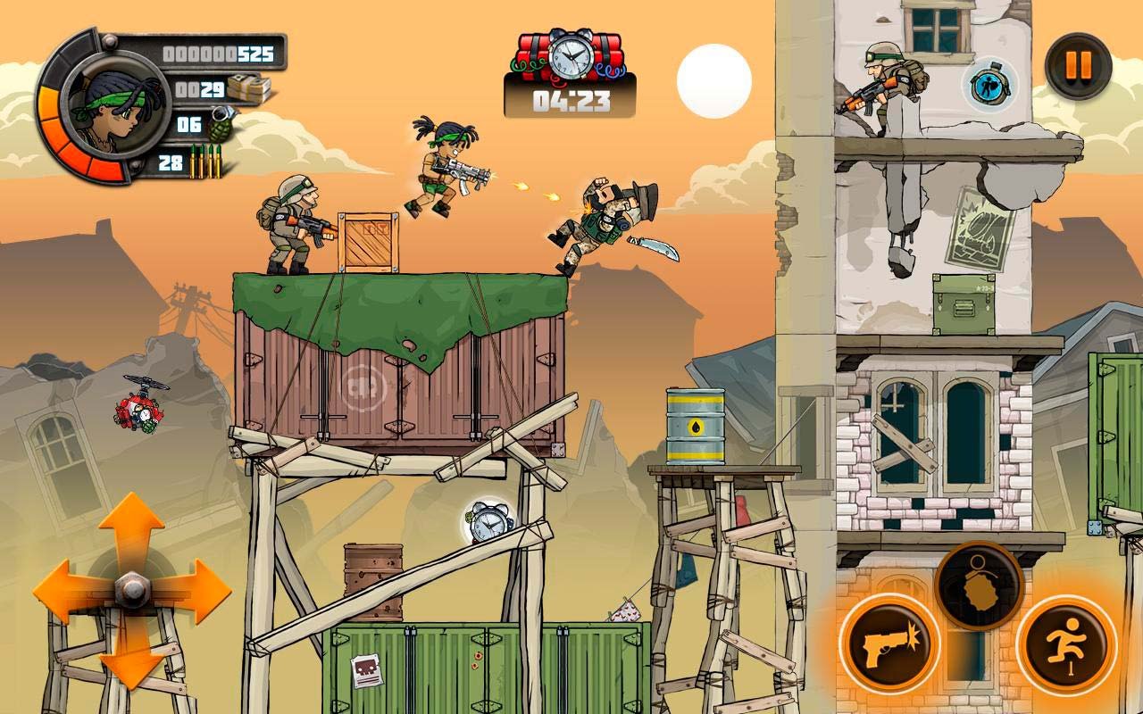 В этой игре герой сможет испытать невообразимое количество возможностей, которых не найти в других платформерах стрелялках. Больше пятнадцати оригинальных миссий, в конце которых есть свои мощные боссы нужно будет пройти, чтобы добраться до последнего места. Герой сможет воспользоваться мощным боевым танком или даже вертолетом, чтобы уничтожать своих противников. Встречайтесь с террористами на этой увлекательной войне и поднимайтесь в воздух, чтобы и там сразиться с ними. Еще никогда игрок не видел столько возможностей в одном платформере.