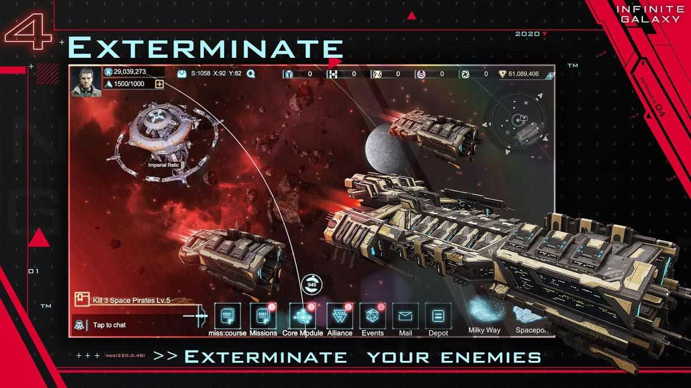 Infinite Galaxy – это огромная виртуальная галактика на экране вашего мобильного телефона. Окунитесь в удивительную стратегию про космос, захватывающую с первых же минут игры. Первоклассная трехмерная графика, оригинальная сюжетная линия, широкие возможности для исследования, детально проработанная система строительства, яркие динамичные сражения, уникальные секреты вселенной и многое-многое другое ждет вас на космических просторах в этой шикарной игре.