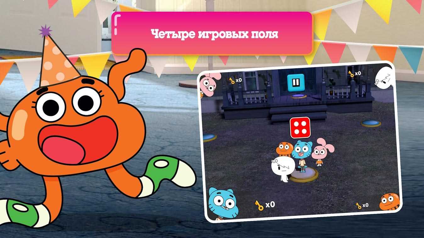 Вечеринка Гамбола – это яркая настольная игра в интерактивном исполнении на экране вашего телефона. Отправляйтесь вместе с друзьями в забавное приключение по мотивам популярного мультика про Гамбола и веселитесь в кампании колоритных персонажей. Тут вас ждет множество интересных мини-игр, классных сюрпризов и море радости. Игра с первых же минут окунает в чарующую атмосферу и поднимает настроение на весь день.