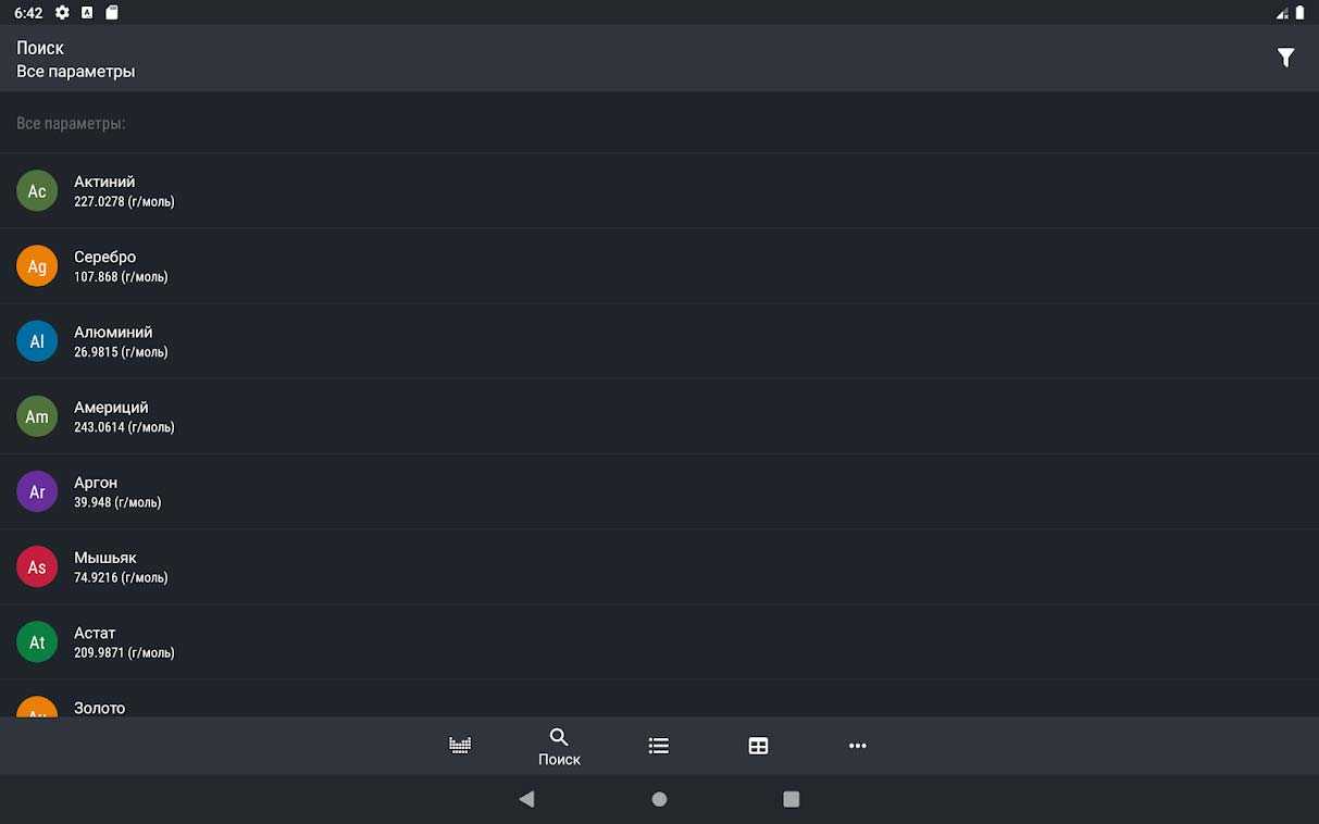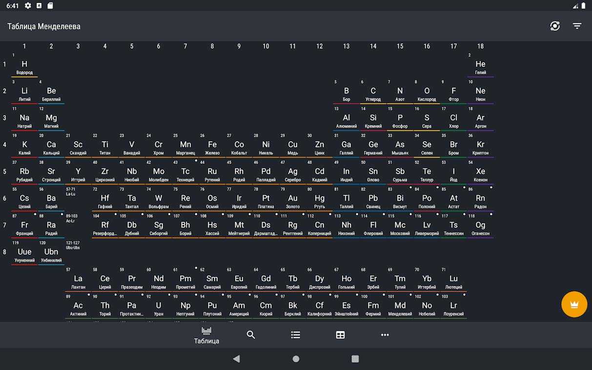 Таблица Менделеева – это полезное мобильное приложение, которое пригодится всем любителям химии. Таблица по умолчанию имеет длиннопериодный вид, она отлично иллюстрирована и удобна в использовании. Отображаемые на элементах свойства типа атомной массы, порядкового номера, электроотрицательности и других можно настраивать самостоятельно. У каждого элемента в описании имеется ссылка на статью о нем в Википедии.