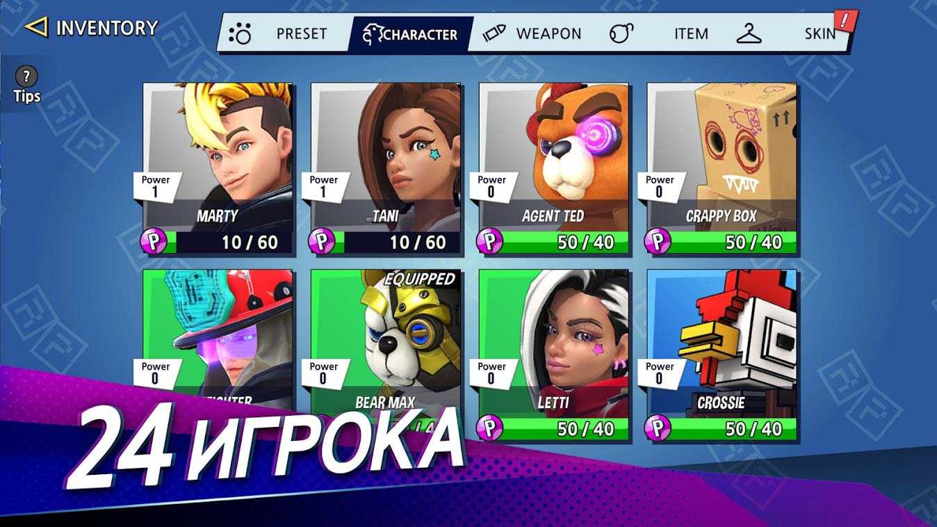 Battlepalooza – это яркая мобильная игра в жанре королевской битвы, где вас ждет множество колоритных героев и шикарные боевые арены с настоящими городскими пейзажами. В режиме реального времени вступайте в противостояние с игроками со всей планеты, побеждайте и получайте ценные призы. Подберите вашему персонажу эксклюзивную экипировку, чтобы он стал еще эффективнее в бою и выделялся на фоне других игроков.Информация об игре