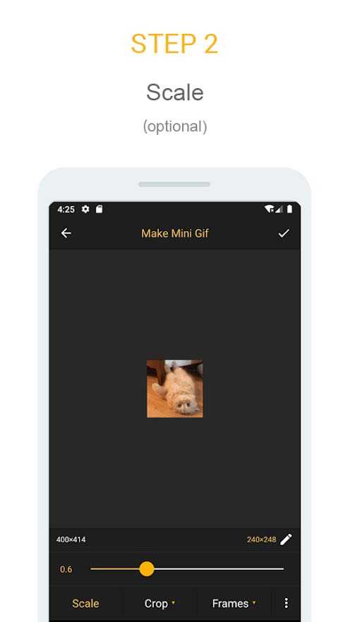 Gif mini – это удобный мобильный инструмент, с помощью которого вы всегда сможете быстро обработать GIF-файлы. Изменяйте их размер, обрезайте как захотите и делитесь полученными результатами в социальных сетях. Тут всего за несколько шагов можно создать отличную гифку, способную порадовать всех посетителей вашей странички. С программой легко научится обращаться даже начинающий пользователь гаджетов.