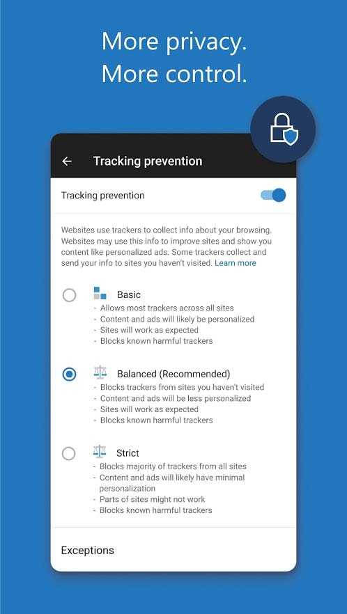 Microsoft Edge: Web Browser – это отличный браузер, совмещающий в себе массу полезных инструментов. Он имеет высокую производительность, экономит ваше время и весьма прост в обращении, а встроенная система защиты конфиденциальности всегда убережет хранящиеся на гаджете данные от чужих глаз. Испробуйте его возможности прямо сейчас и лично убедитесь в высоком качестве приложения.