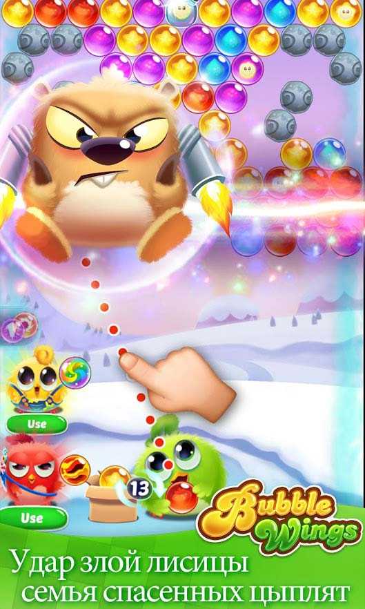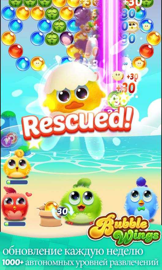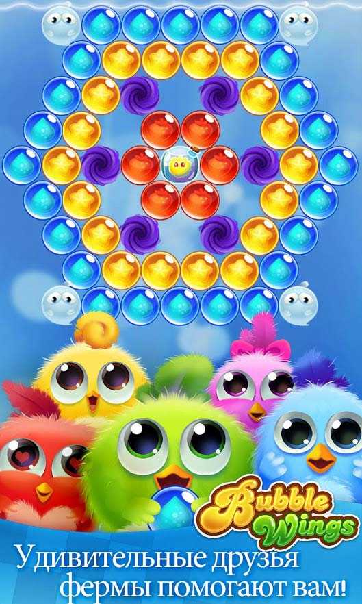Bubble Wings – это милая казуальная игра для мобильных платформ, в которой вас ждет более тысячи автономных уровней развлечений. В компании чудесных цыплят ищите комбинации красочных пузырей, расстреливайте их и спасайте очаровательных животных. Попробуйте сыграть во все режимы, оцените стильный дизайн интерфейса, украсьте виртуальный дом и примите участие в соревнованиях с игроками по всему миру.