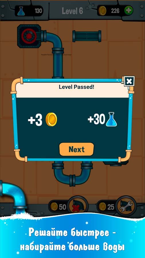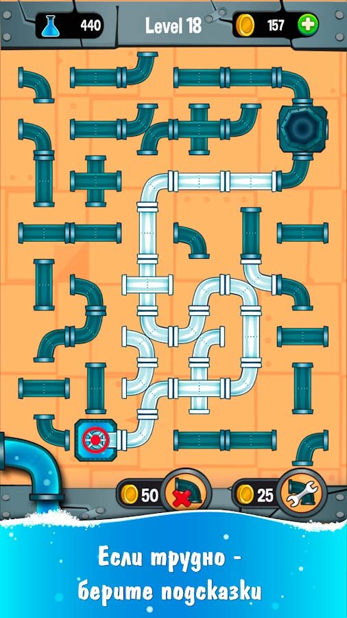Вам ничего сложно делать в этой игре не придется, ведь нужно просто поворачивать в нужном направлении трубы и выстраивать целую водопроводную сеть. Решайте четыре сотни этих увлекательных головоломка и собирайте новые контейнеры. Ваша задача с помощью водопровода набрать полный контейнер воды и закончить определенный уровень, добиваясь новых наград и призов. Учувствуйте в гонке за лидирующие позиции и выбивайтесь на первое место в рейтинге. Никогда не бойтесь собирать подсказки, ведь они могут вам действительно помочь выиграть очень трудный уровень.Информация об игре