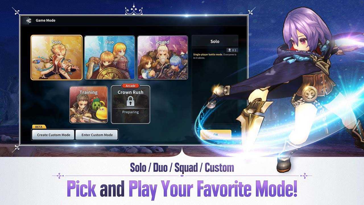 Royal Crown – это захватывающий экшен, в котором вас ждут эпичные королевские битвы в ярком фэнтезийном мире. Высококлассная графика и динамичные матчи всегда поднимут настроение. Различные режимы открывают простор для выбора – попробуйте сражения в каждом из них и найдите лучший для себя. У каждого героя свои уникальные характеристики, так что изучайте их, подстраивайтесь под ситуацию и воюйте как вам вздумается.Информация об игре