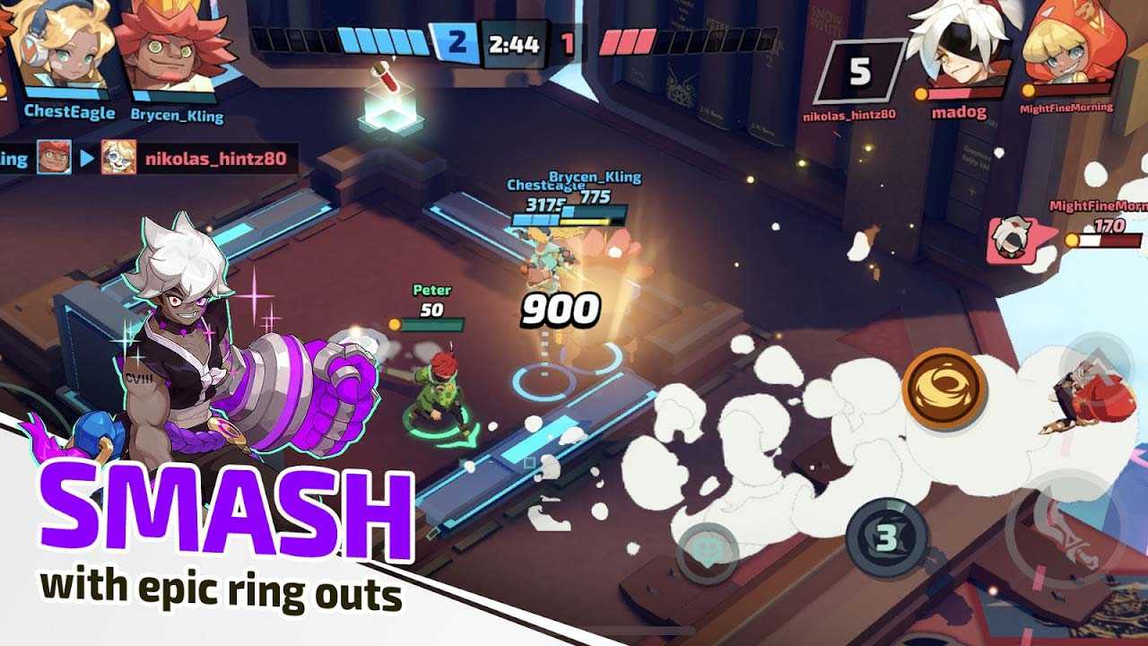 SMASH LEGENDS – это яркий мобильный экшен с симпатичными персонажами и стремительными трехминутными сражениями. Участвуйте в многопользовательских баталиях, попробуйте все режимы и побывайте на всех картах. Нокаутируйте противников крутыми ударами или выбрасывайте их за пределы локаций. Большой выбор персонажей с уникальными способностями подойдет для разных боевых стилей – выберите свой и покажите класс, заняв верхние строки лидерских таблиц.