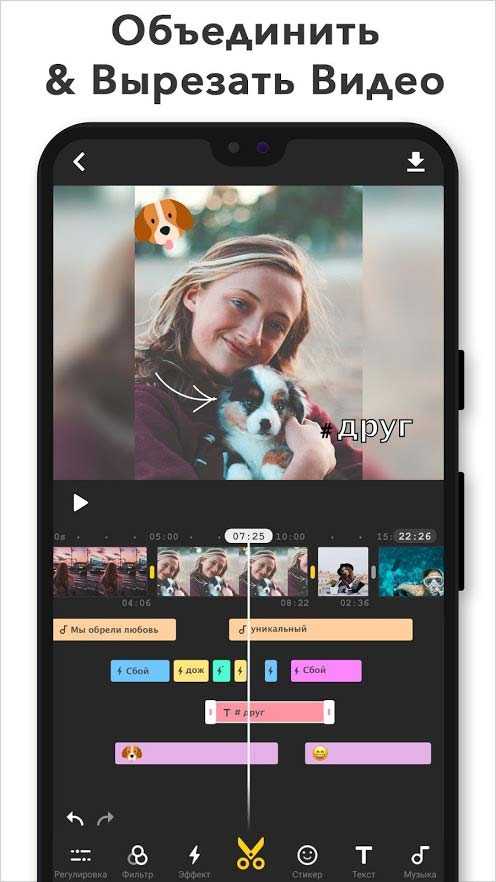 YouTube - My Movie – это отличный современный набор инструментов для работы с видео. Объединяйте и вырезайте ролики, используйте мощные функции редактирования, добавляйте текст и наклейки, экспериментируйте с крутыми эффектами, накладывайте музыку, создавайте слайд-шоу и многое-многое другое. Работать с видео с телефона здесь очень удобно и просто, разобраться с программой сможет даже новичок в этой сфере.