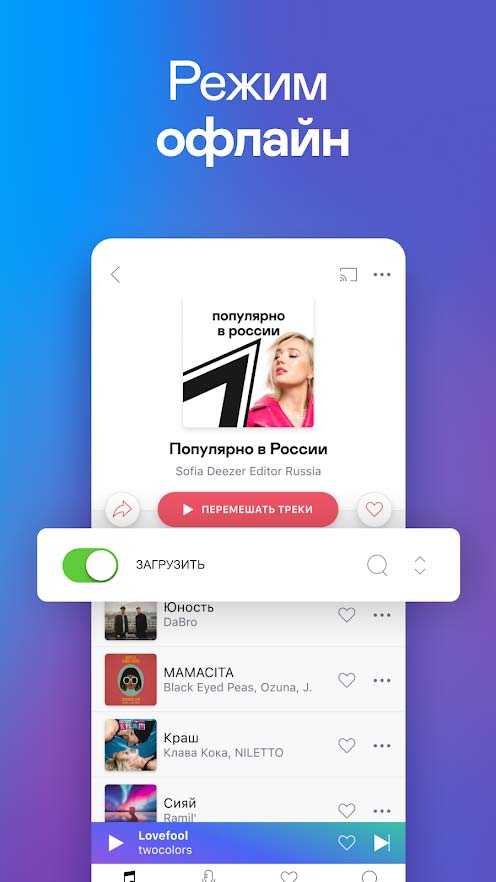 Deezer – это миллионы треков и подкастов у вас на ладони. Слушайте любимую музыку, настраивайте красочный плеер и пользуйтесь всеми преимуществами удобного приложения. Загружайте нужный контент для прослушивания в любое время офлайн. Интуитивно понятный интерфейс плеера не составит проблем, а высокое качество воспроизведения музыки оставит лишь положительные эмоции.