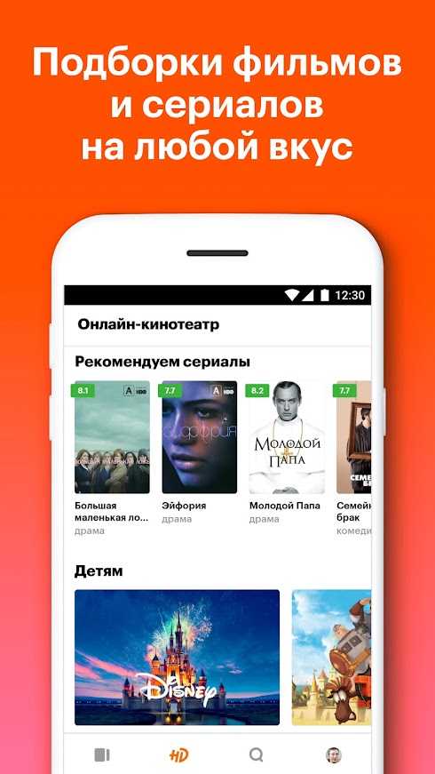 КиноПоиск – это крупнейший в рунете онлайн кинотеатр и энциклопедия кино. Любители фильмов и сериалов найдут здесь уйму полезной информации. Заказывайте билеты в кино с экрана телефона за пару нажатий клавиш. Оформляйте подписку и наслаждайтесь огромной коллекцией фильмов, мультиков, сериалов и телешоу на любой вкус в отличном качестве когда и где вам удобно.
