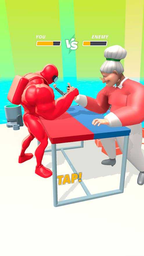 Muscle Rush – это забавная казуальная игра с простым геймплеем и эпичными забегами качков. Тут вас ждет куча интересных испытаний, в которых предстоит громить стены, драться с хулиганами, участвовать в соревнованиях по армрестлингу и многое-многое другое. Собирайте энергетики и качайте мускулы вашему герою, чтобы сделать его еще сильнее и круче. За большее количество пробитых препятствий будет и большая награда, так что не жалейте сил.
