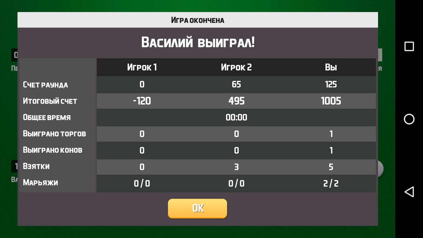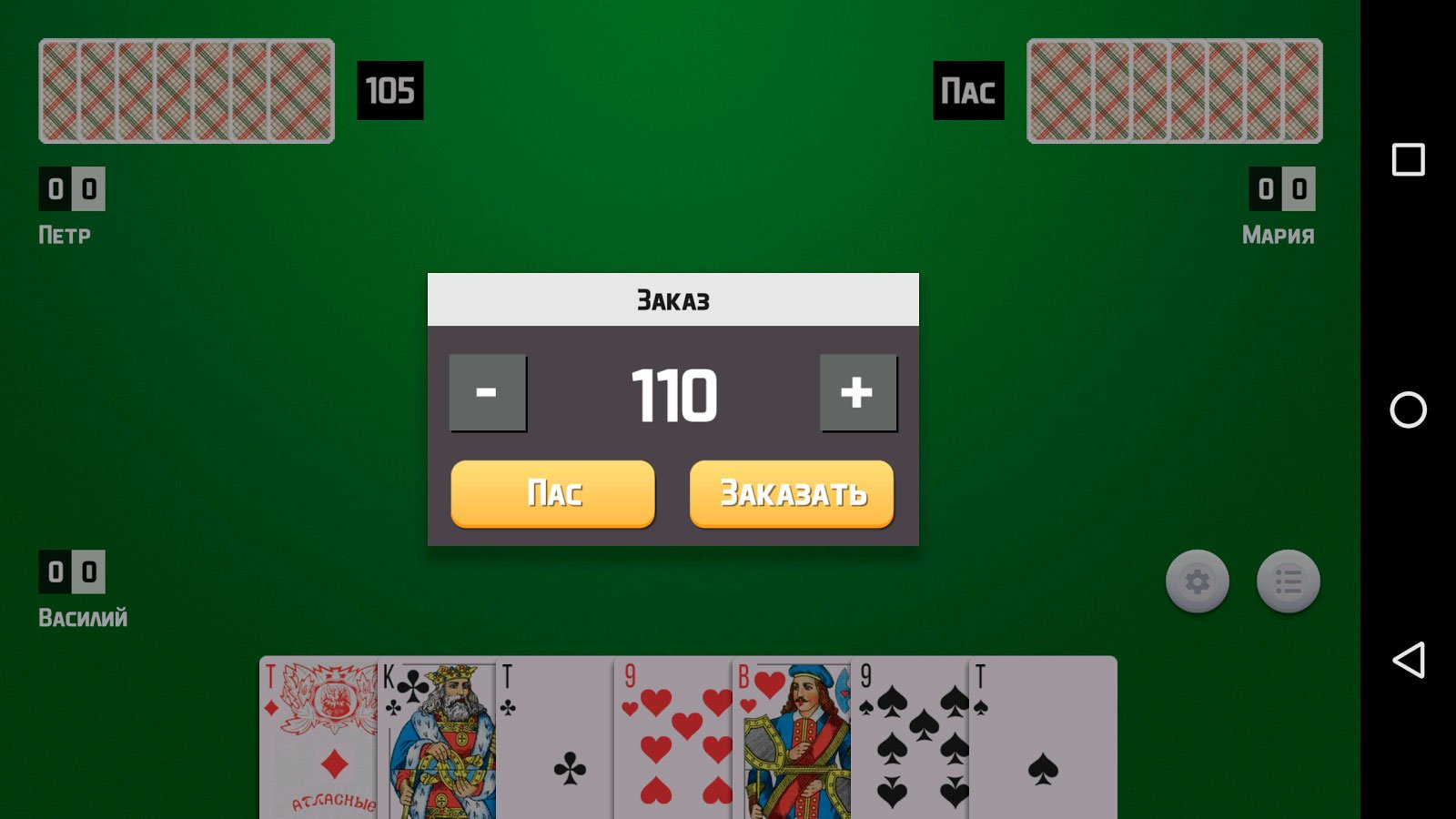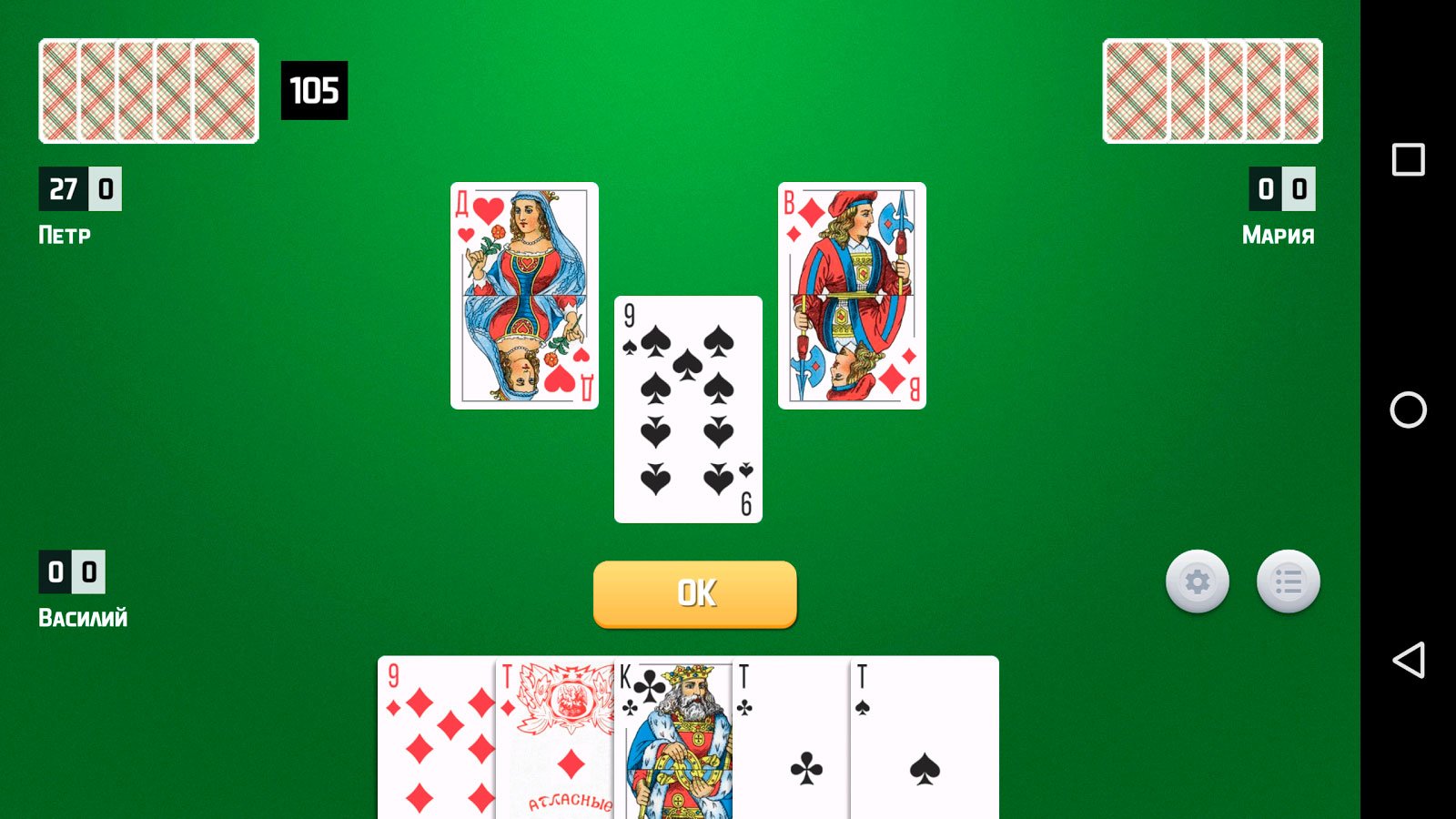 Приложение имеет приятный интерфейс с возможностью выбора вида колоды карт, удобное управление и аутентичное звуковое сопровождение. Также вы сможете настроить приложение по своему вкусу и выбрать набор договоренностей, чтобы сделать партии гораздо интереснее.