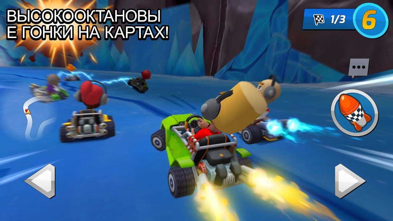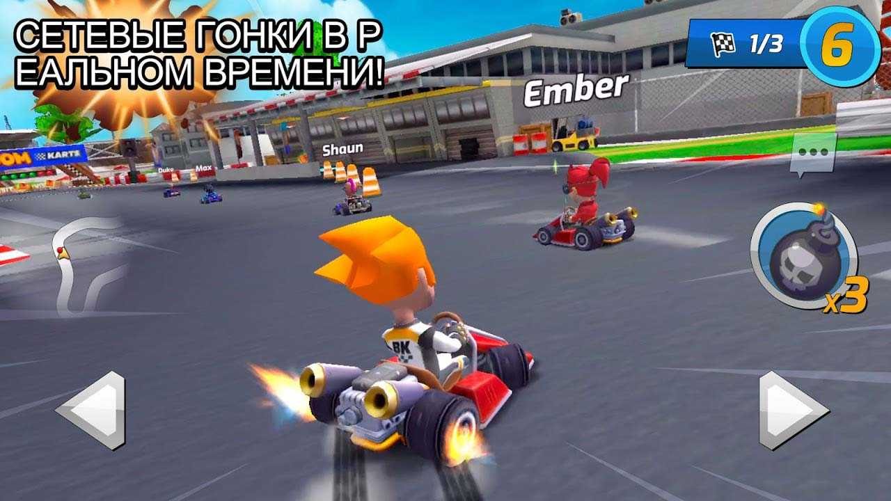 Boom Karts – это яркий экшен в реальном времени, где вас ждут головокружительные гонки с игроками со всего мира. Сумасшедшие аркадные гонки с несколькими режимами, красочными скинами, простым управлением и незабываемой атмосферой сделают ваш день и всегда подарят хорошее настроение. Благодаря огромным возможностям персонализации героев вы сможете создать свой уникальный стиль и навсегда запомниться другим игрокам.