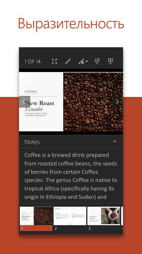 Microsoft PowerPoint – это уже давно привычное для многих людей приложение для создания презентаций, равное которому найти сложно. С ним вы всегда сможете произвести впечатление на аудиторию и донести до нее свою мысль в красочных картинках. В мобильной версии можно работать где вам удобно, на ходу редактируя документы вместе с другими пользователями. Эффектные презентации делать стало еще проще – скачивайте эту программу на телефон и приступайте к работе.
