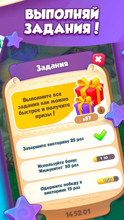 Мемория – это новая крутая викторина с занимательными вопросами из разных категорий и отличной графикой. Исследуйте красочный мир Мемории, выполняйте задания и собирайте ценные призы. Несколько уровней сложности позволяют подстроить вопросы под ваш уровень знаний – так играть будет максимально интересно. Покажите ваши навыки и смекалку, чтобы стать лучшим игроком.