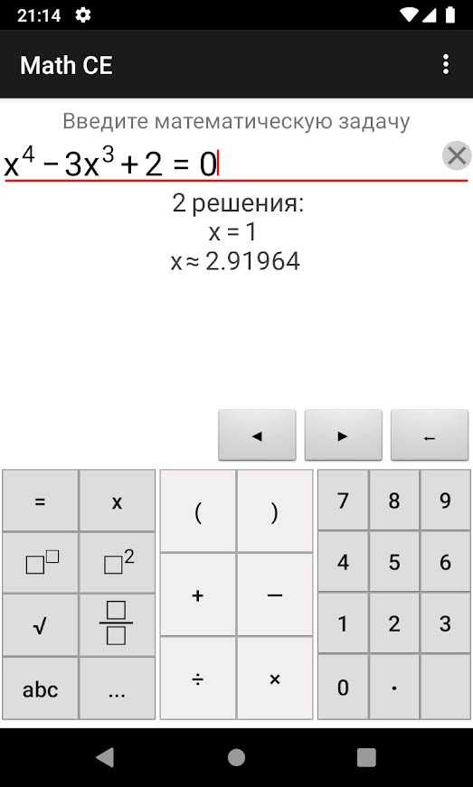 Math CE – это удобный мобильный калькулятор, который всегда поможет решить самые разные математические уравнения. Стильный дизайн и простое управление делают его весьма популярным среди современных пользователей. Здесь поддерживаются модули и квадратные корни, можно решать уравнения и неравенства в упрощенной форме, и все это работает и в офлайн режиме.Информация об игре
