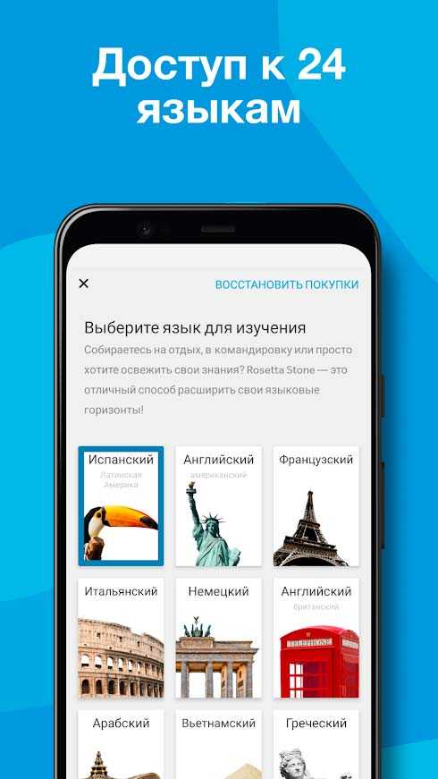 Rosetta Stone – это новое мобильное приложение для изучения иностранных языков, с которым вы быстро освоите большой объем информации. Сочетание проверенных методов обучения и запатентованной технологии распознавания речи эффективно помогает повысить уровень произношения и стать уверенным носителем языка. В программе вам достаточно проводить по 10 минут в день, чтобы уже скоро увидеть прогресс в обучении.