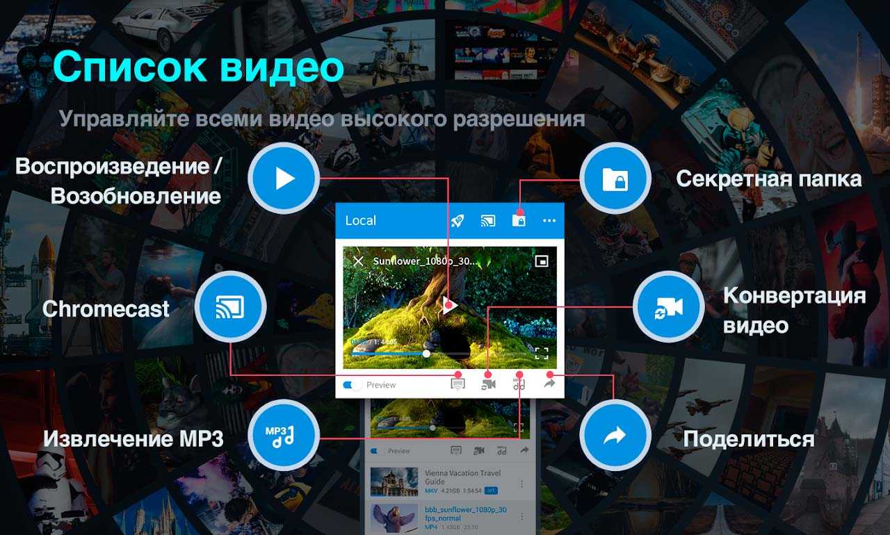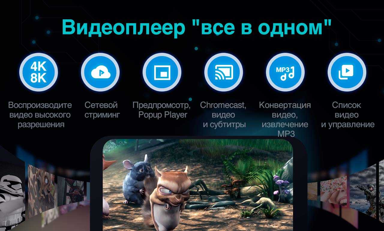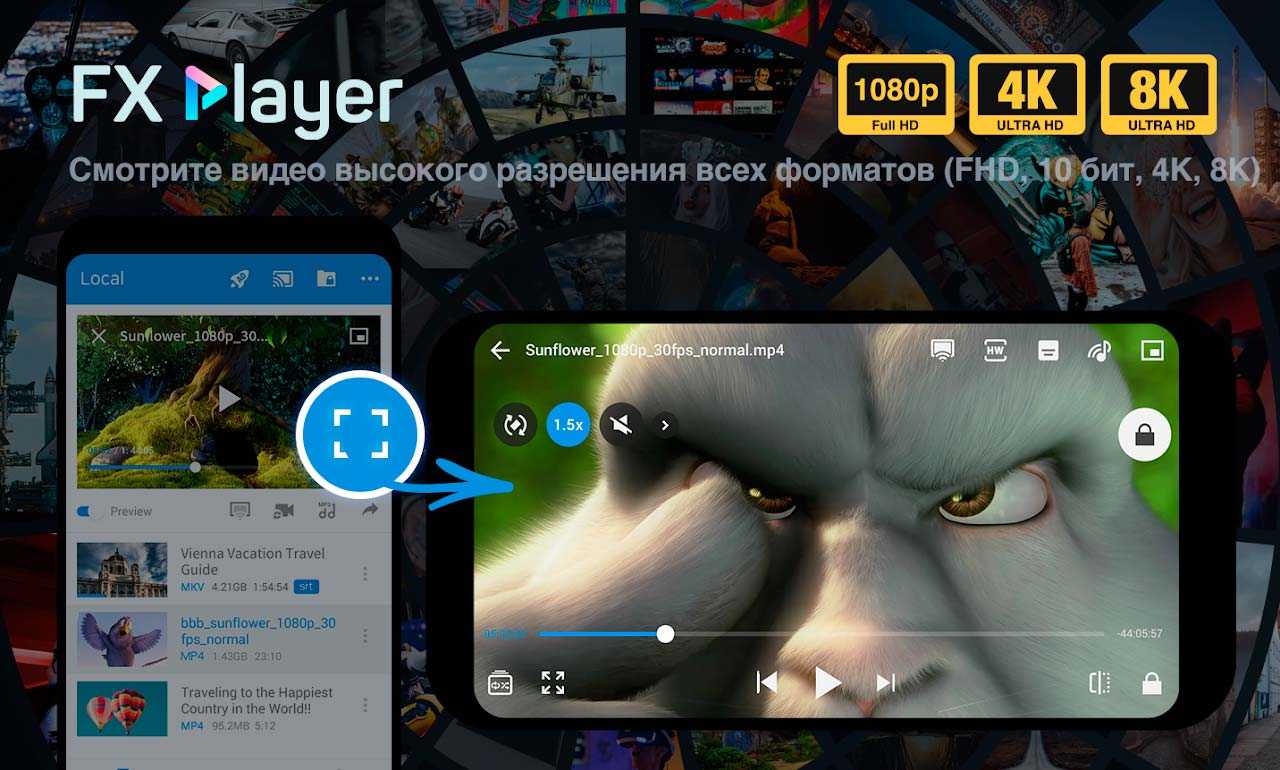 FX Player – это инновационный мобильный плеер, позволяющий смотреть видео высокого разрешения всех форматов. Он имеет функции сетевого стриминга, предпросмотра, конвертации видео и многие другие преимущества перед аналогичными программами. Регулируйте громкость, яркость, скорость с помощью простых жестов и наслаждайтесь отличным качеством проекта.