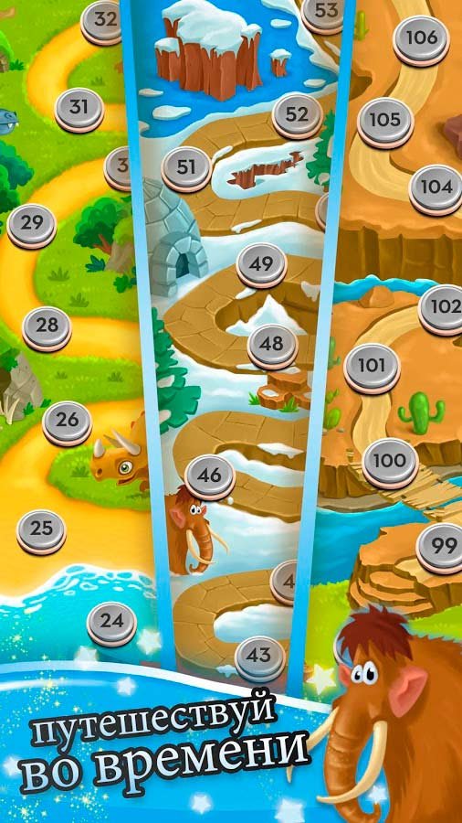 Игроку вместе с этими главными действующими героями нужно будет попытаться вернуться в современный мир, а вся история начнется с глубокой древности, когда существовали мамонты. Собирайте в мощные комбинации капли только одного цвета и завоюйте новые награды и достижения. Вам предстоит сталкиваться с новыми удивительными локациями и пройти кучи испытаний. Каждый новый уровень сбирает в себя все самое удивительное и красивое. Вы должны будете собрать как можно больше капель, чтобы перейти на следующий уровень и открыть новую эру. Перед вами будут поставлены уникальные задачи и цели.Информация об игре