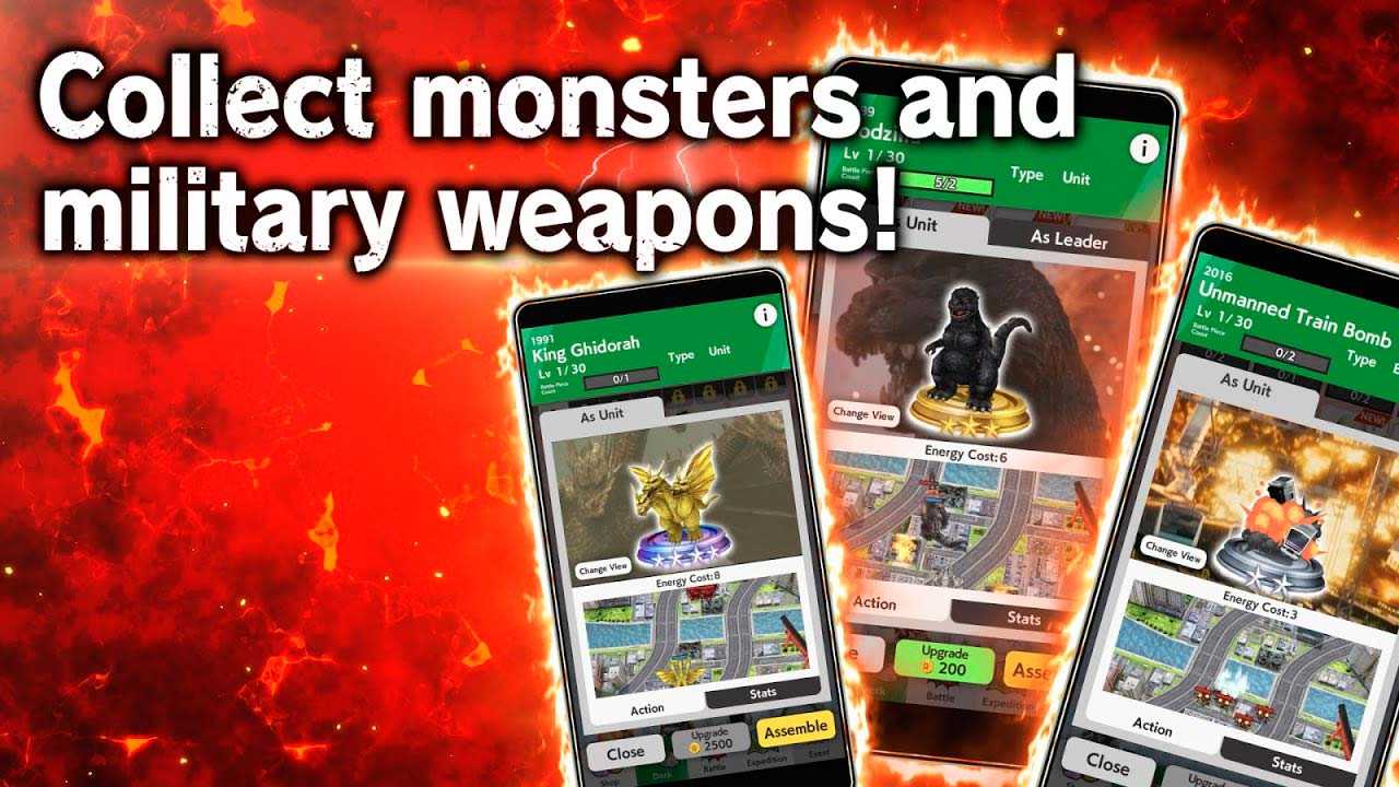 GODZILLA BATTLE LINE – это эффектные битвы гигантских монстров у вас на ладони. Создайте команду из могучих чудовищ и отправляйтесь на динамичные трехминутные сражения. Знакомые многим по фильмам про Годзиллу гиганты готовы ринуться в бой под вашим командованием – распланируйте стратегию и начинайте скоростные масштабные баталии. За победы вы будете получать специальные карты острова монстров, исследовав которые можно найти новые виды чудовищ.