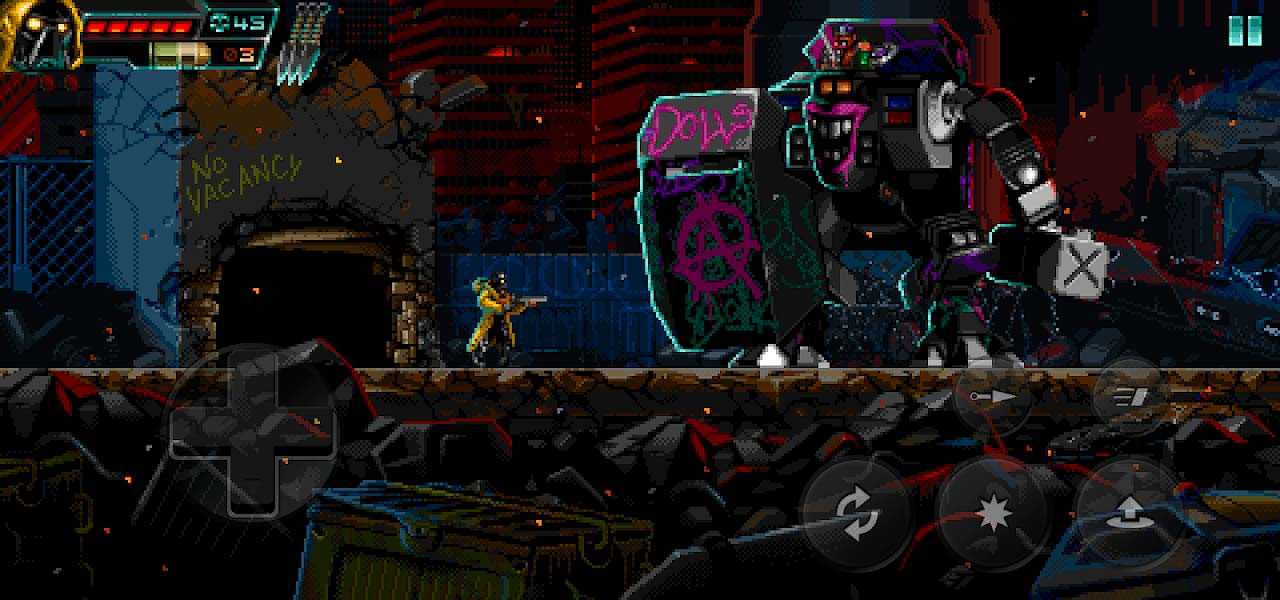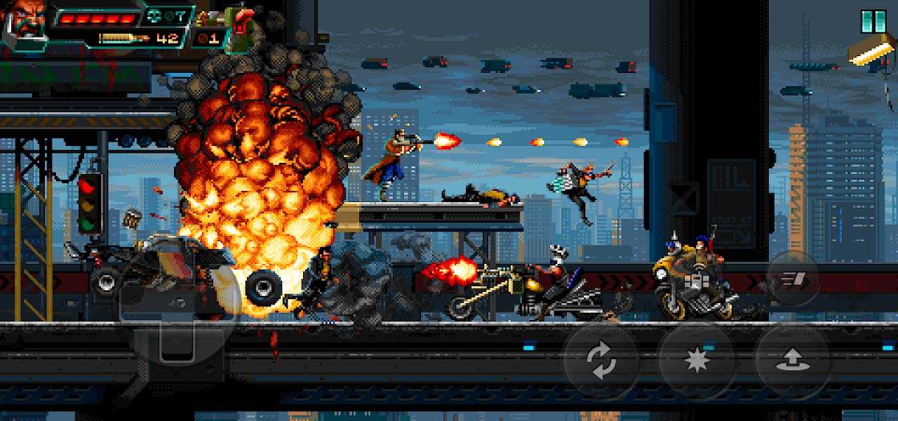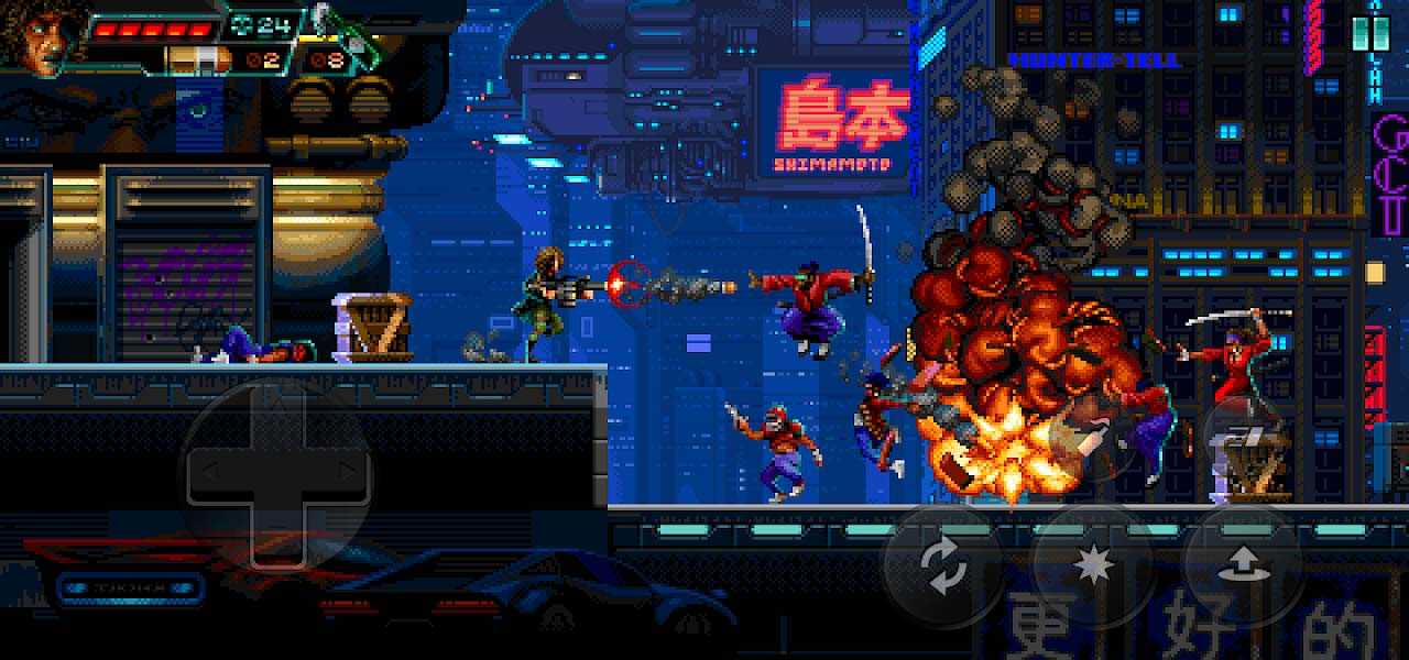 Huntdown – это новый мобильный экшен с крутыми героями и ожесточенными битвами. Яркий двухмерный мегаполис охвачен волной преступности, и только вы в образе матерого охотника за головами в силах навести тут порядок. Безумные схватки с кучей противников и мощными боссами ждут всех ценителей достойных испытаний. Потрясающая картинка с функцией боковой прокрутки, отлично детализированным фоном и шикарными спецэффектами подарит вам массу незабываемых ощущений.