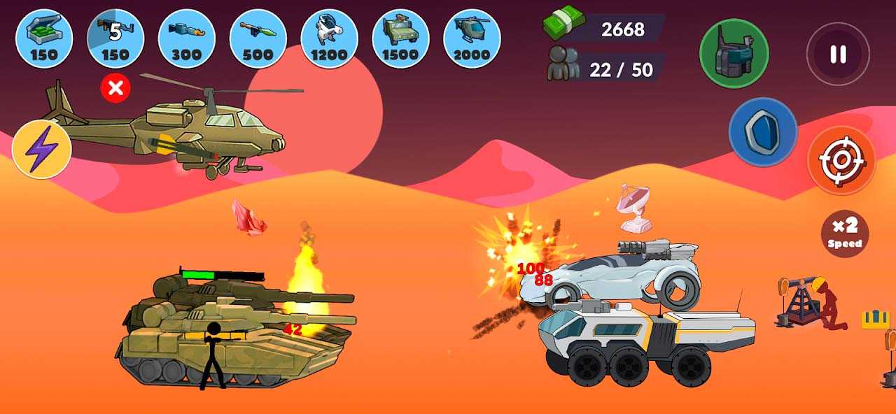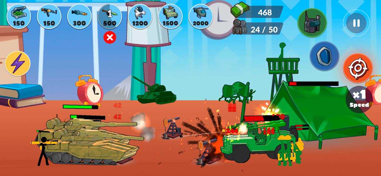 Stickman World Battle – это ожесточенные бои армий стикменов с яркими спецэффектами и простором для военных маневров. Под вашим командованием тут будут разные типы юнитов и боевой техники. Улучшайте бойцов и укрепляйте базу, чтобы покорить самых опасных врагов и защитить полученные трофеи. Множество игровых локаций, бонусные уровни, потрясающая графика и другие особенности проекта создают незабываемую атмосферу, которую вам не захочется покидать.