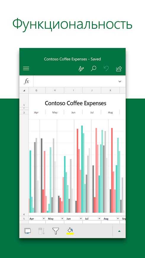 Microsoft Excel – это приложение для работы с электронными таблицами номер один во всем мире. Многофункциональная, надежная и эффективная программа позволяет легко и быстро создать таблицу и отредактировать ее. Здесь вы найдете массу востребованных среди современных пользователей шаблонов, в которых используются привычные для вычислений формулы. Визуализируйте введенные данные с помощью диаграмм, создавайте печатные заметки и рисунки путем сенсорного ввода, контролируйте общий доступ к документам и работайте с ними когда вам удобно.