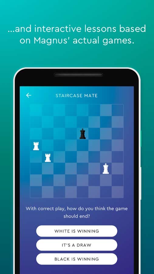 Скачать Magnus Trainer - Learn & Train Chess на андроид должны те, кто хочет стать профессионалом и вам будут доступны такие особенности:- Вам будет доступно огромное количество новеньких и уникальных возможностей, чтобы выиграть шахматные турниры;
