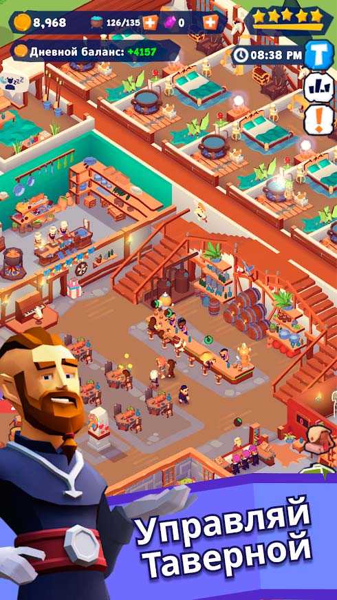Idle Inn Empire Tycoon – это увлекательный мобильный симулятор, в котором вам выдастся возможность управлять собственной средневековой таверной. Сделайте все для удобства посетителей, следите за работой кухни, наливайте лучшие напитки и собирайте коллекцию питомцев. Улучшайте вашу таверну, стройте монументы, варите вкуснейшее пиво и зазывайте новых гостей на огонек.