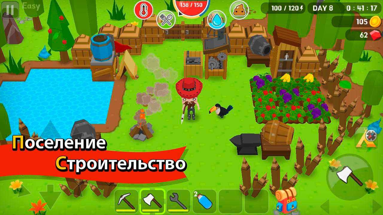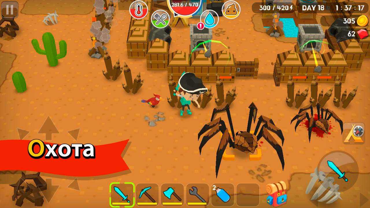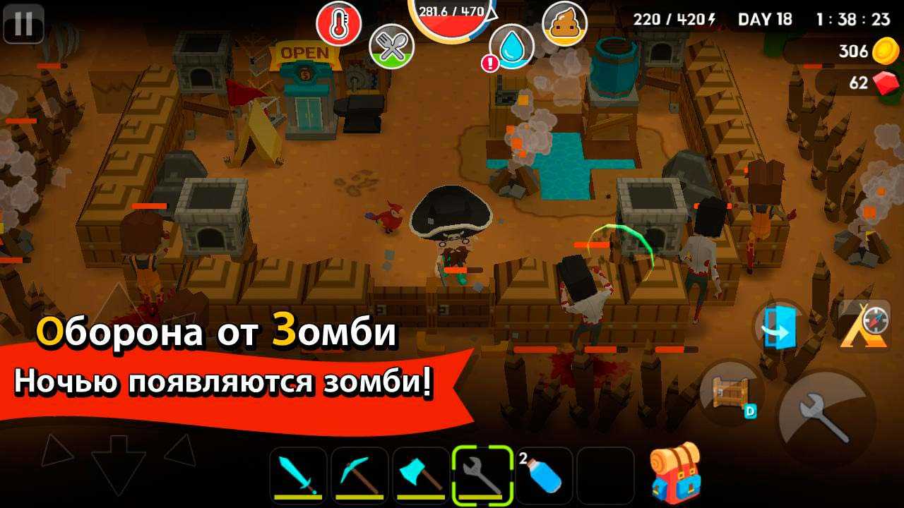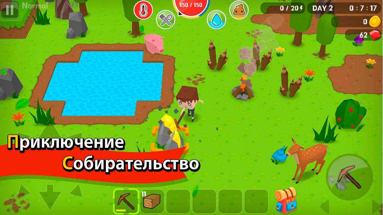 Mine Survival – это увлекательные мобильные приключения с отличной графикой и разнообразием контента. Занимайтесь сбором ресурсов, охотой, изготовлением предметов, строительством, борьбой с монстрами и многими другими интересными делами. Но будьте осторожны – ночью появятся зомби, и нужно успеть как-то обезопасить себя и приготовиться к их нападению. Следите за жизненными показателями героя и поддерживайте его самочувствие на достаточном уровне, иначе игра быстро закончится.