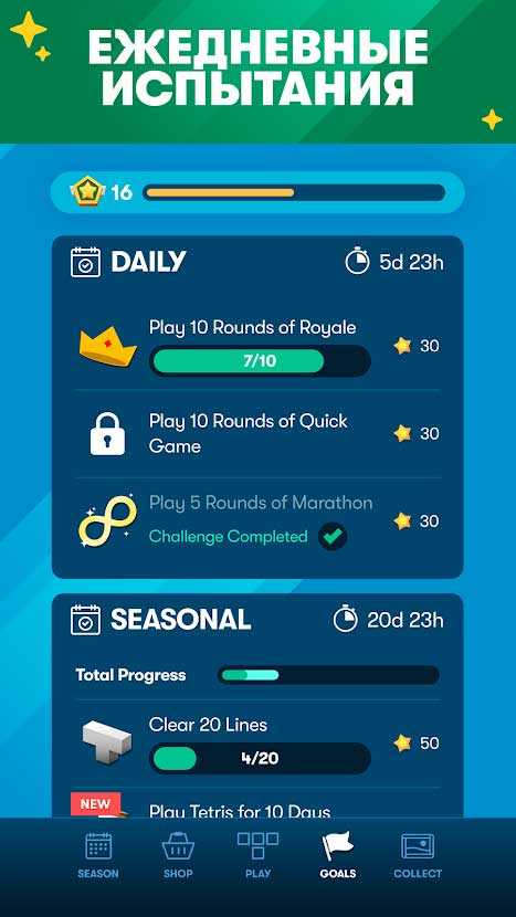 Tetris – это давно знакомая многим людям игра в формате современного мобильного приложения. Встречайте полюбившуюся головоломку в ярком оформлении с ежедневными испытаниями, pvp-матчами на выживание, настраиваемыми темами и кучей классных наград. Соревнуйтесь в быстрых матчах, бейте рекорды, оттачивайте навыки и наслаждайтесь одной из лучших головоломок всех времен.
