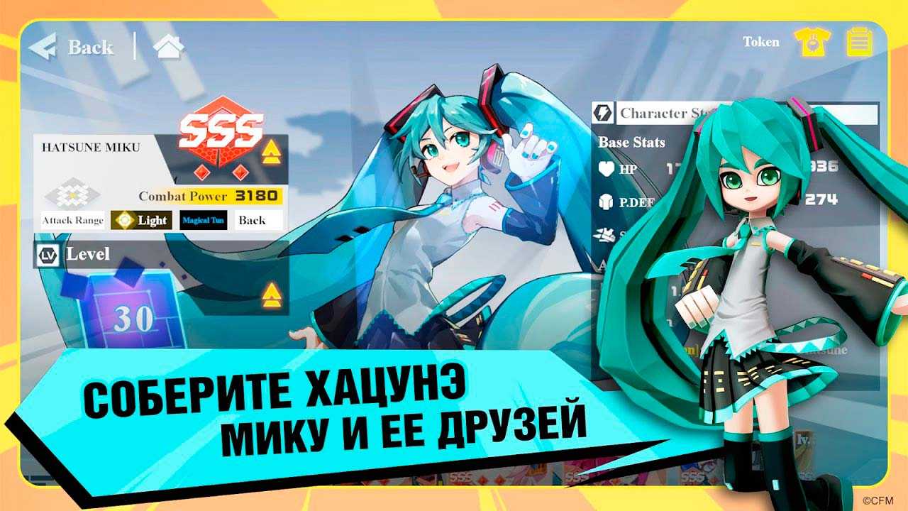Хацунэ Мику – это обновление для популярной мобильной игры, в которой вас ждут знакомые многим персонажи. Встречайте музыкальный фестиваль с кучей красивейших нарядов, динамичных сражений и захватывающих событий. Отправляйтесь на поиски редких ресурсов и попробуйте разгадать все тайны, хранимые этим удивительным виртуальным миром. Разнообразие боевого геймплея порадует всех ценителей жанра, так что приготовьтесь к захватывающим испытаниям.Информация об игре