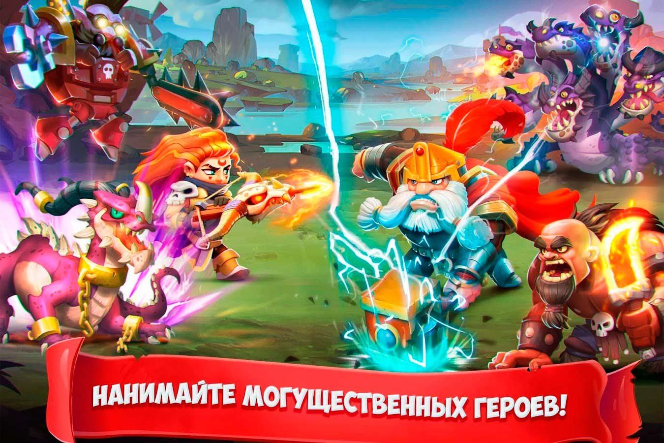 - Захватывающие автоматические битвы между добром и злом с большой коллекцией легендарных героев;