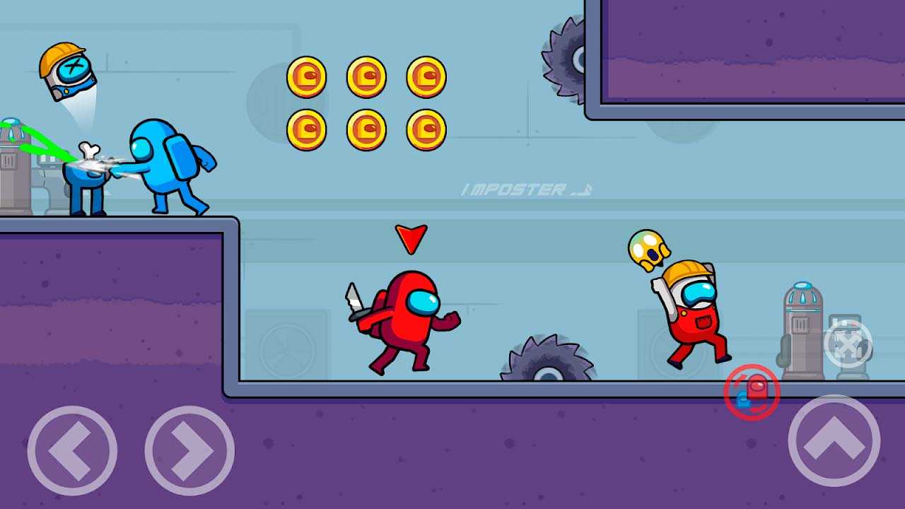 We're Impostors: Kill Together – это новые приключения самозванцев на экране вашего мобильного телефона, в которых вас ждет множество интересных испытаний. Тут вы будете управлять сразу двумя героями: красным и синим самозванцами. Бегайте по уровням в поисках убийцы, остерегайтесь вездесущих ловушек и помогайте другим участникам команды. У ваших героев разные навыки – комбинируйте их, чтобы эффективнее выполнять задания и быстрее достигать поставленных целей.