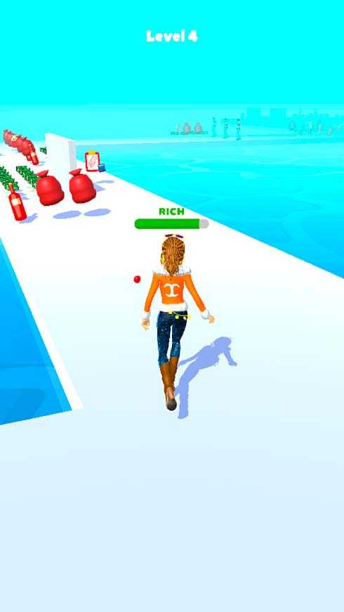 Run Rich 3D – это необычная казуальная игра, в которой вас ждут испытания на подиуме. Собирайте все необходимое, чтобы развивать персонажа и уверенно двигаться к успеху. Находите пачки денег и роскошные вещи – тогда ваши дела пойдут в гору. А если возьмете слишком много бутылок и мусорных баков, вам предстоит лишь разочарование. Внимательно выбирайте маршрут и объекты для взаимодействия, так вы легко выполните все задания и разбогатеете.