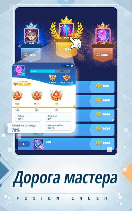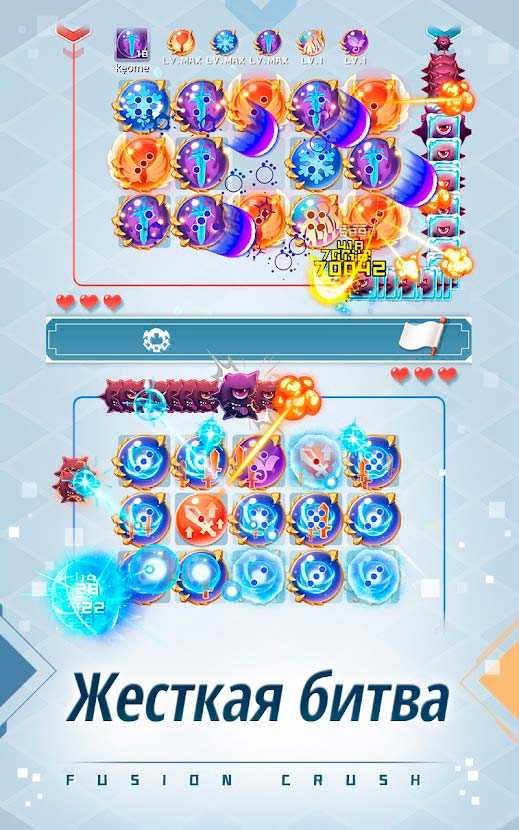 Fusion Crush – это необычная мобильная стратегия, в которой вас ждут ожесточенные битвы в стиле фьюжн. Бросайте вызов друзьям и знакомым или объединяйтесь с ними, чтобы дать отпор опасному противнику. Вашими бойцами тут будут шарики с разными умениями – выбирайте их с умом, формируйте военные хитрости и отправляйтесь покорять многочисленных врагов. Несколько режимов станут достойным испытанием для любого игрока, так что приготовьтесь с интересом провести время и отлично отдохнуть.