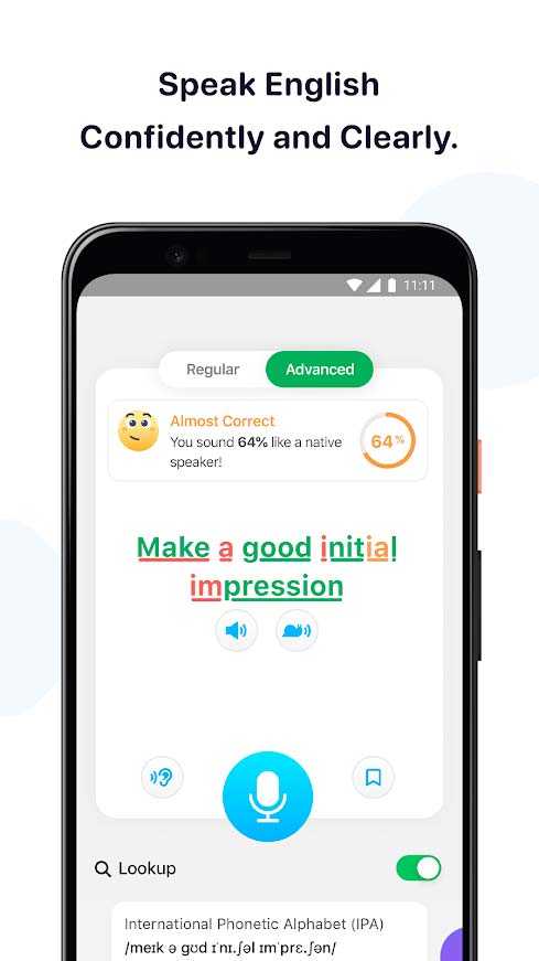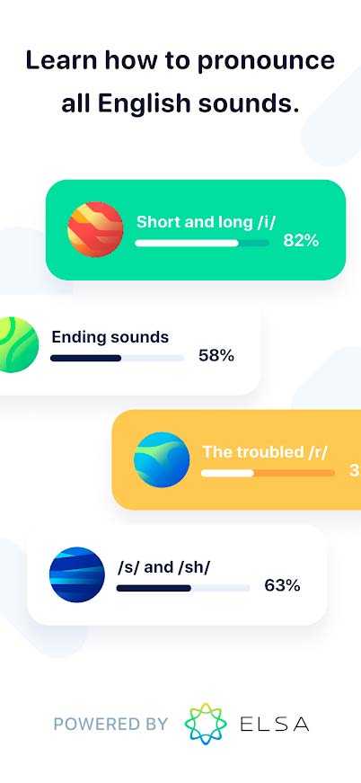 ELSA Speak – это уникальное мобильное приложение, обучающее английскому языку с особенной коррекцией произношения для минимизации акцента. С ним вы не только сможете выучить новые слова и фразы, а также попрактикуете их близкое к оригиналу звучание. Новейшие технологии в области искусственного интеллекта и распознавания речи помогают быстро и эффективно находить проблемные места, чтобы вы знали где стоит поработать и привели свое владение языком к лучшему виду.
