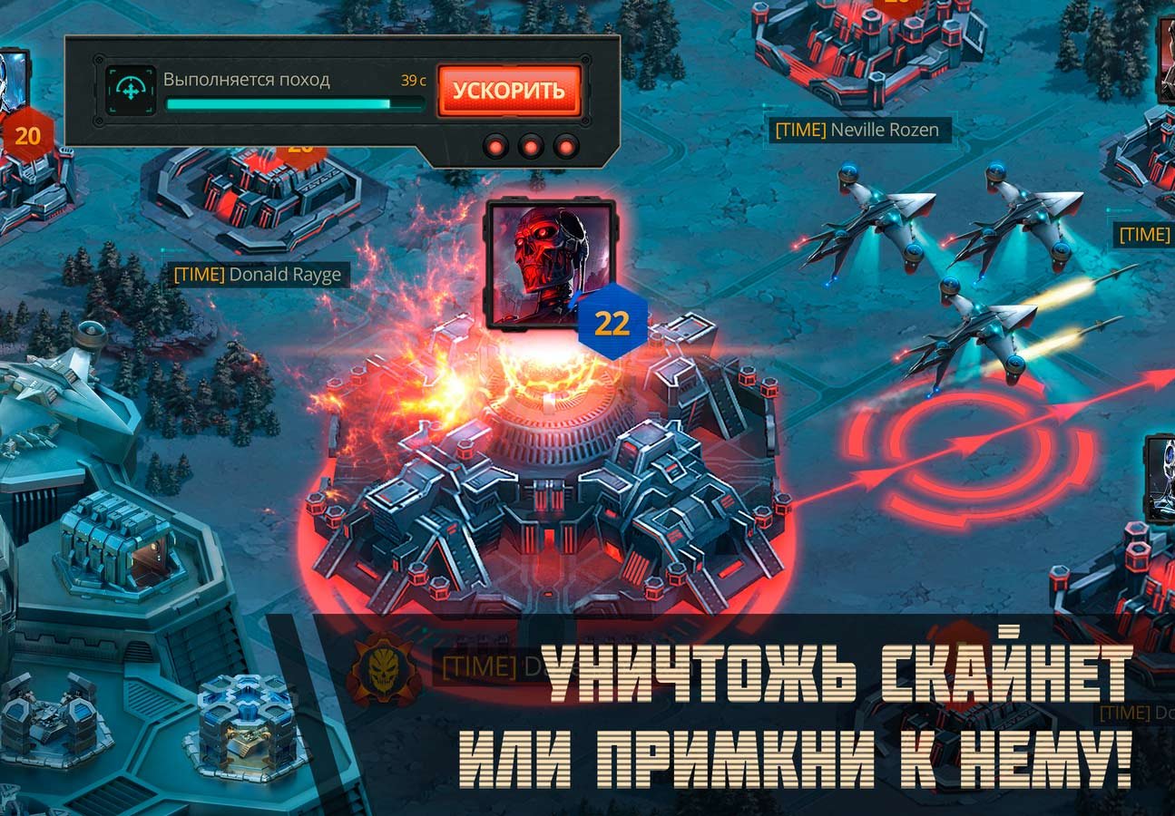 Как только запустите эту игру подумайте над тем, какую фракцию выбрать. Вы можете вступить в ряды воинов сопротивления или на сторону Скайнета. Решайте, какой путь будет вашим в этот раз, и наслаждайтесь победами. Встаньте во главе сопротивления и выбирайте новые цели для решения проблем. Вы должны будете возглавить огромную армию и с ее помощью добиться победы. Управляйте футуристическими машинами, которые обладают уникальными особенностями и каждый день сражаются за достижения. Разработайте новую технологию инновационной системы, чтобы сражаться и выиграть эту войну навсегда покончив с восстанием машин.
