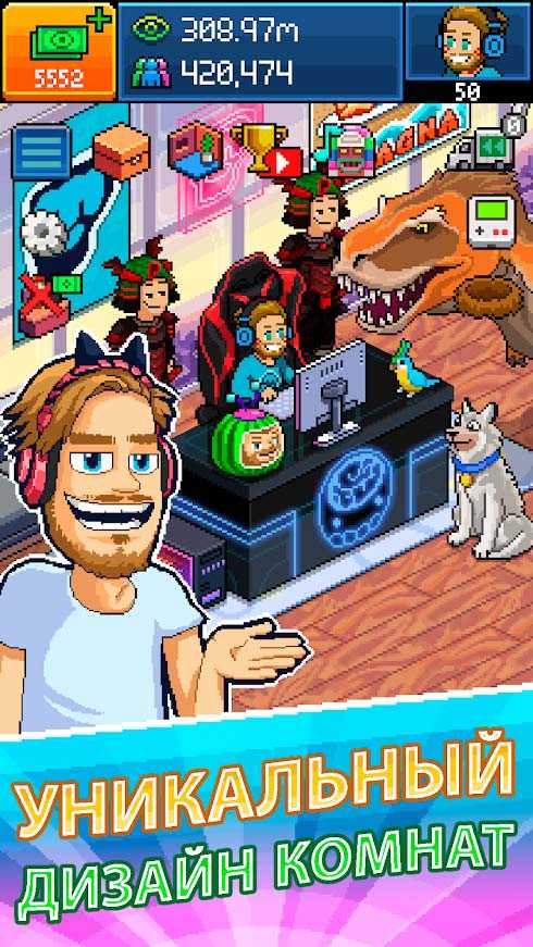 PewDiePie's Tuber Simulator – это отличный мобильный симулятор ютубера, с которым вы легко станете настоящей звездой интернета. Уникальный дизайн комнат, тысячи предметов, увлекательные мини-игры, тематические события и многое-многое другое ждет вас. Играйте вместе с друзьями, делитесь впечатлениями и эмоциями, развивайтесь и просто отдыхайте в приятной кампании.