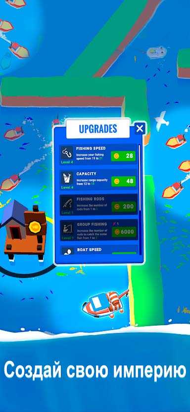 Fish idle: hooked tycoon – это новая мобильная аркада про рыбалку, в которой вас ждут яркие и захватывающие приключения. Станьте настоящим охотником за рыбой, плавая по бескрайним водным просторам в поисках все новой добычи. Сдавайте улов, получайте прибыль и вкладывайтесь в рыбную ферму, чтобы увеличить доход. Ловите много разной рыбы, используйте другие способы заработка, и вы быстро разовьете свой бизнес.