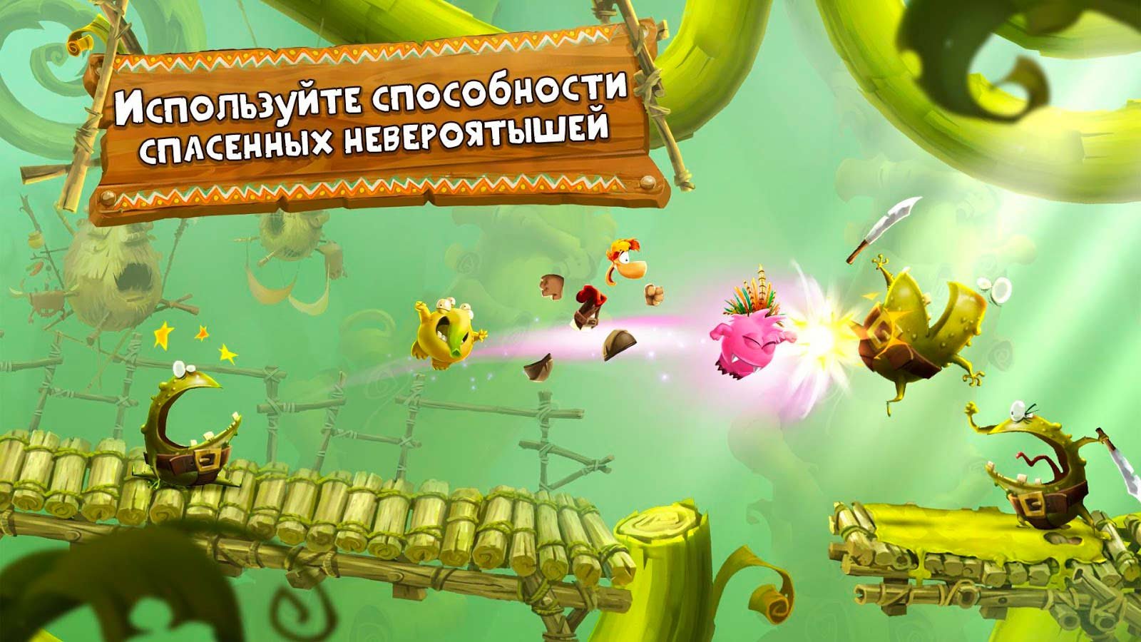 Решившего пройти эти аркадные приключения нужно скачать Rayman Приключения на андроид и станут доступны такие особенности: