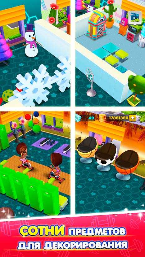Моя Фитнесс Студия – это ваш собственный интерактивный спортклуб с кучей возможностей. Начинайте с тренажерного зала небольших размеров и постепенно развивайте его, обустраивая в угоду посетителей. Помогайте людям с физическими нагрузками, следите за тренировками, покупайте новые тренажеры, управляйте кафе с полезной едой и украшайте помещения. С таким симулятором спортзала скучать вам не придется.