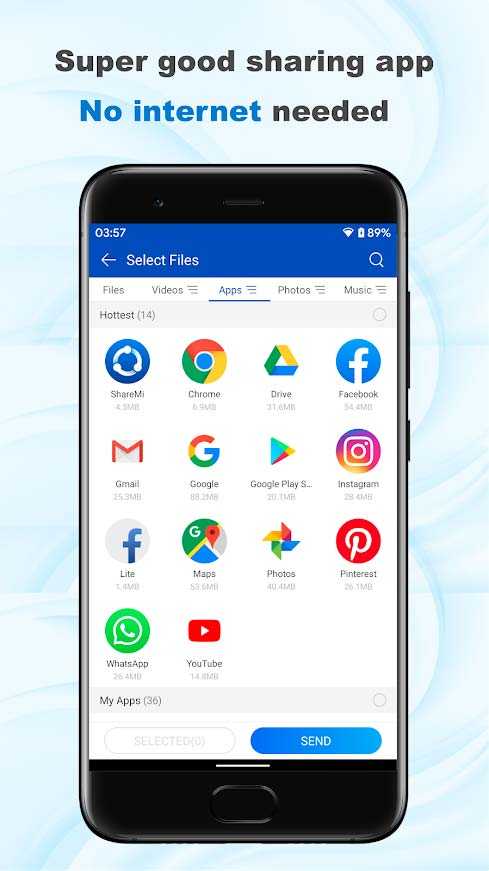 ShareMi – это менеджер для передачи файлов с возможностью работы без подключения к интернету. Пользуйтесь офлайн режимом и делитесь с друзьями нужными файлами, не тратя при этом мобильный трафик. Работа с любыми форматами файлов, быстродействие, интуитивно понятный интерфейс и другие преимущества приложения делают его одним из лучших в своей области. А скорость передачи файлов с его помощью доходит до 30МБ в секунду.