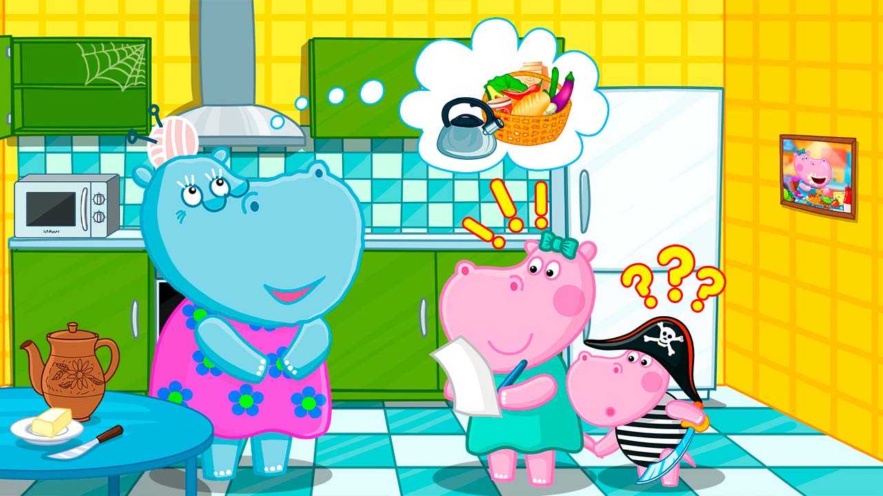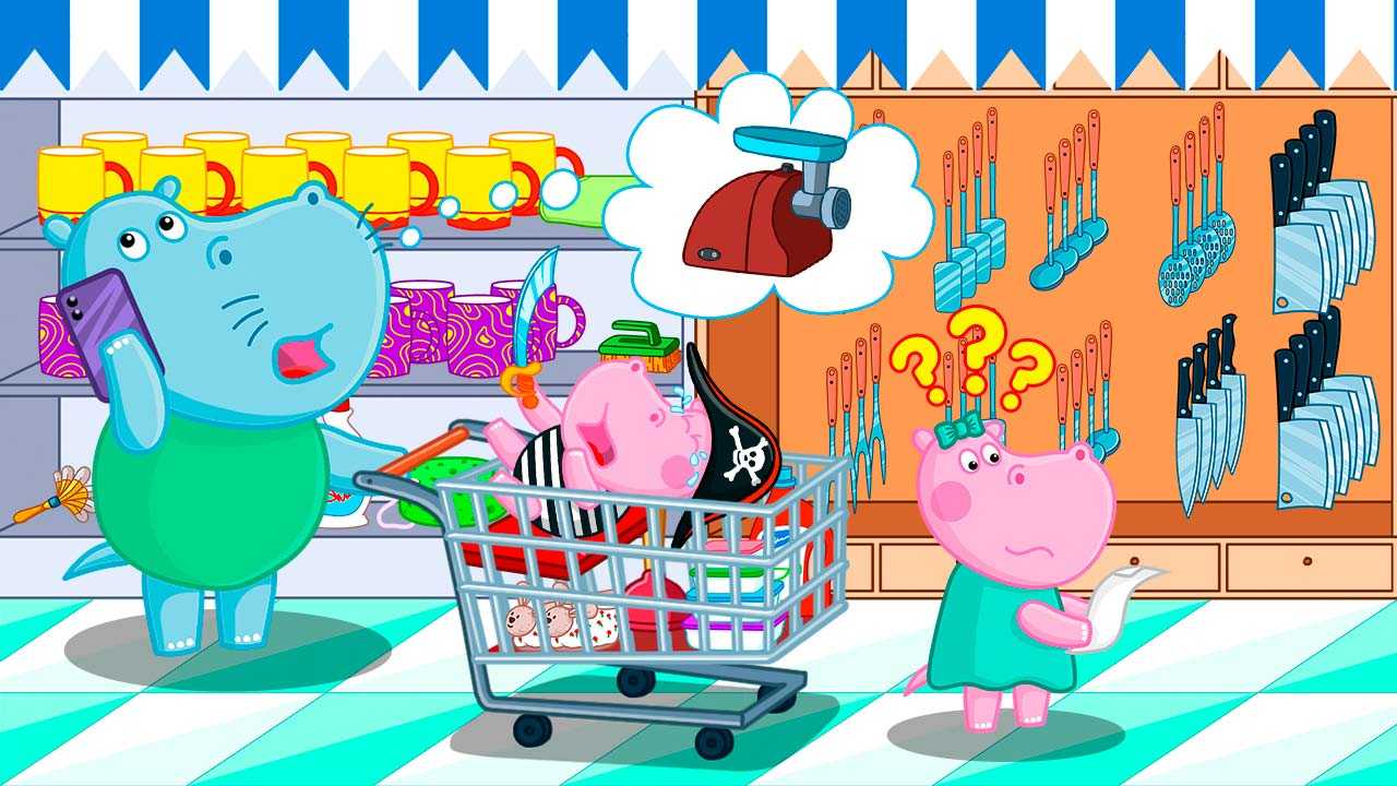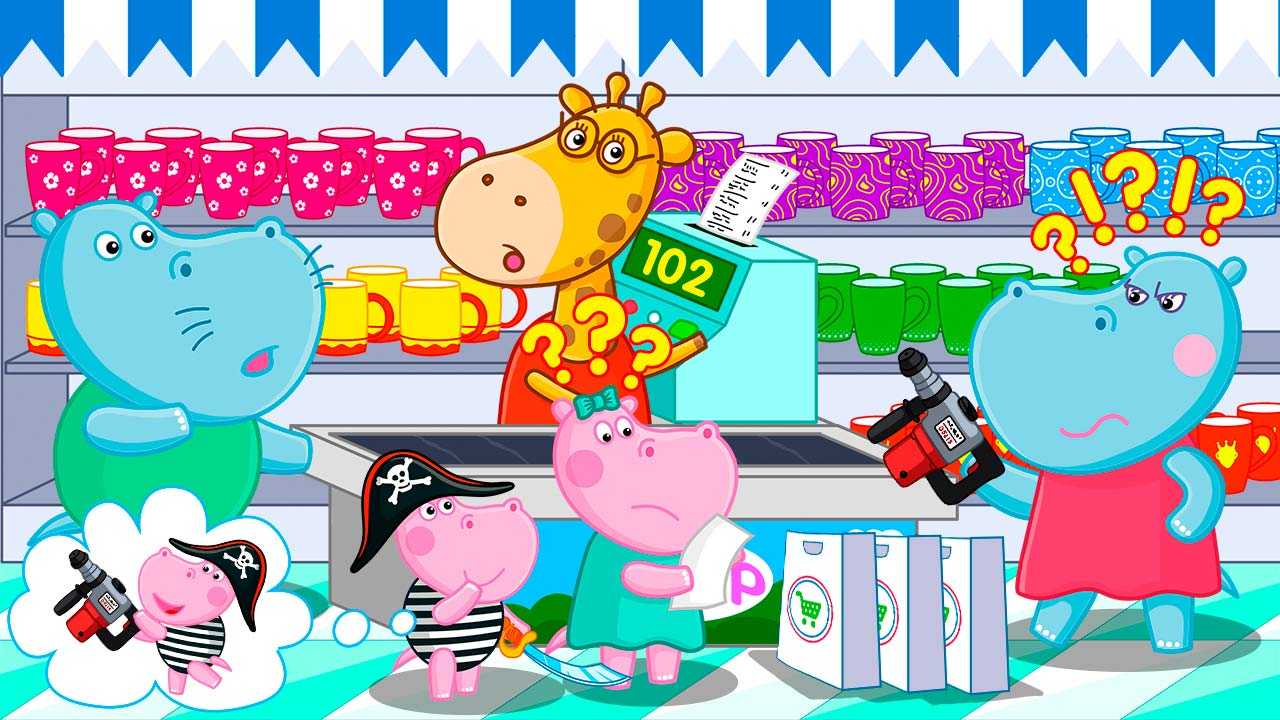 Супермаркет – это увлекательная мобильная игра для детей, в которой вас ждут веселые приключения с семейством гиппопотамов. Берите тележку и отправляйтесь в супермаркет за покупками и не только. Собирайте товары по списку, не купите случайно чего лишнего, и задание будет пройдено на отлично. Здесь ребенок узнает много нового, познакомится с разными продуктами и вещами, а также весело отдохнет в приятной компании добродушных мультяшных героев.