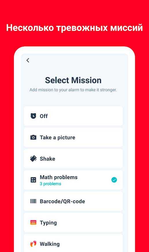 Alarmy – это отличный мобильный будильник, подходящий для разных типов сна. Для крепко спящих людей можно настроить очень громкий рингтон, чтобы быть уверенным в пробуждении. А для тех, кто любит спокойно просыпаться по утрам, всегда есть нежные мелодии. Для отключения будильника также можно настроить отключение по фотографии. Если хотите встряхнуть свой мозг – тут есть интересные математические задачи.