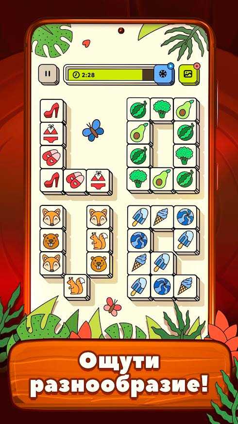 Twin Tiles – это увлекательная игра по поиску парных картинок. Здесь вас ждет множество интересных загадок с отличной графикой и расслабляющей атмосферой. Проходите уровни, используйте крутые бустеры, отыскивайте все больше картинок и наслаждайтесь высоким качеством проекта. С ним вы легко убьете время и всегда поднимете себе настроение. Если почаще практиковаться, то можно научиться быстро разгадывать даже самые сложные головоломки и стать настоящим мастером.