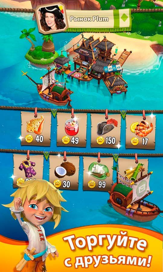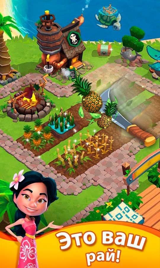 Как только вы окажитесь на этом большом и красивом тропическом острове, у вас не будет ничего кроме земли. Начинайте е засаживать фруктовыми деревьями и растениями, а потом собирайте свой первый урожай из бананов, ананасов и множества других овощей и фруктов. Они пойдут на первую продажу и принесут вашему острову золото. После этого вы сможете открывать новые уровни и развиваться дальше. Кроме этого свободного режима игрок сможет принять участие в сюжетных приключениях и отправиться в море, где полно опасностей и даже есть пираты. Приглашайте на тропические острова своих друзей и вместе объединяйтесь в союзы, чтобы заниматься успешной торговлей.Информация об игре